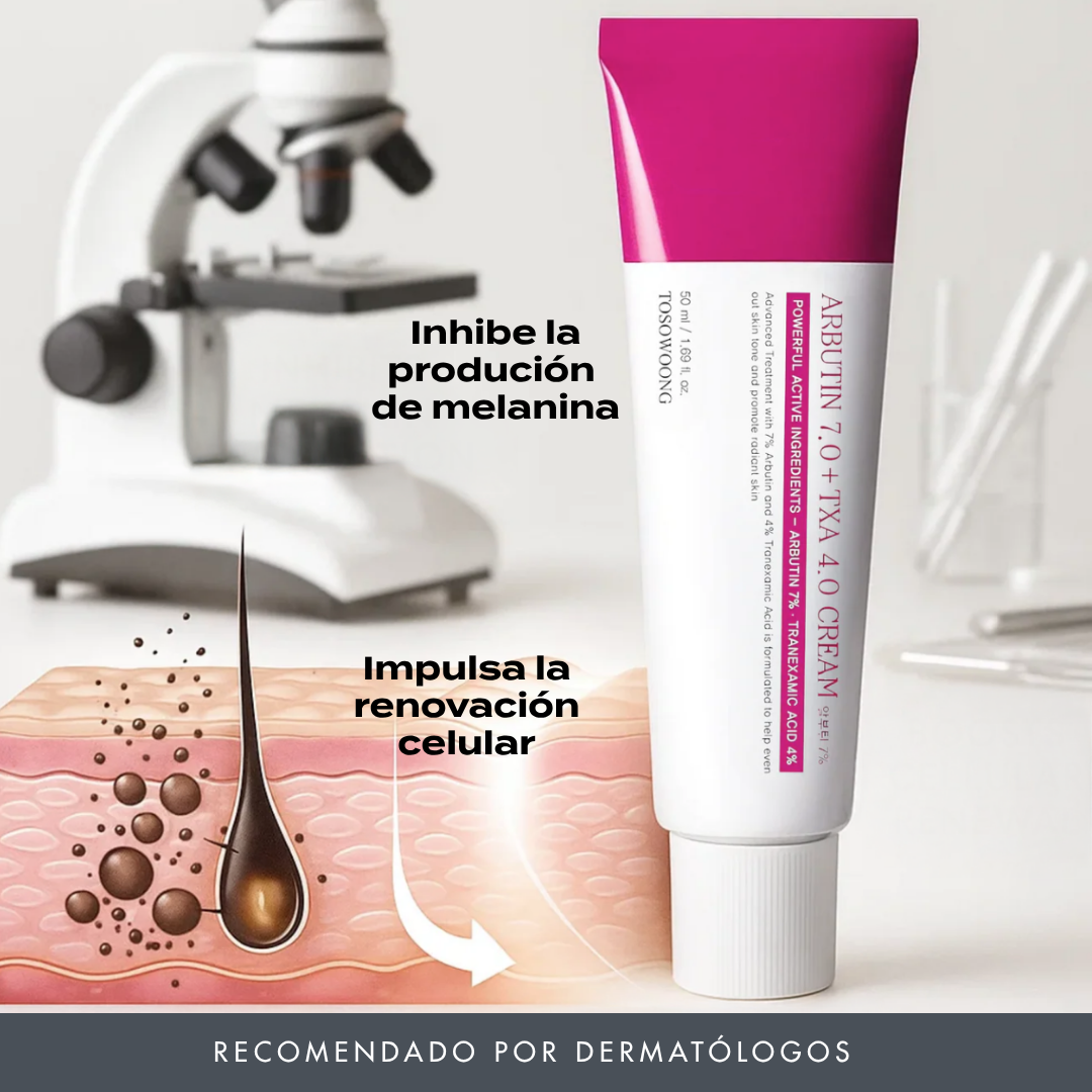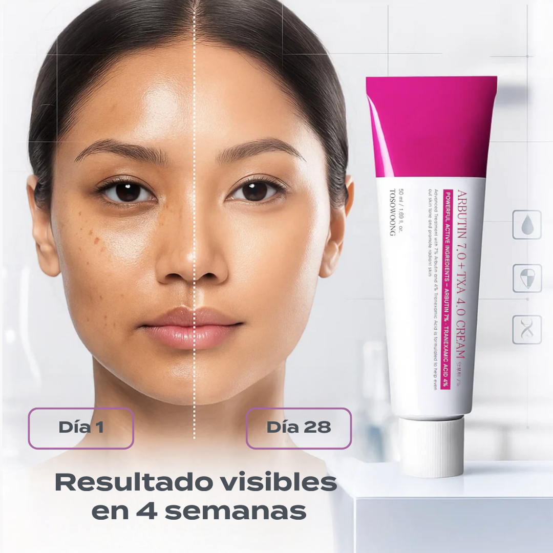 Nuestra crema antimanchas combina Arbutina, Ácido Tranexámico y Niacinamida para reducir manchas y unificar el tono. Su fórmula natural penetra en profundidad, hidrata y renueva la piel, dejando un rostro más luminoso, parejo y saludable.
